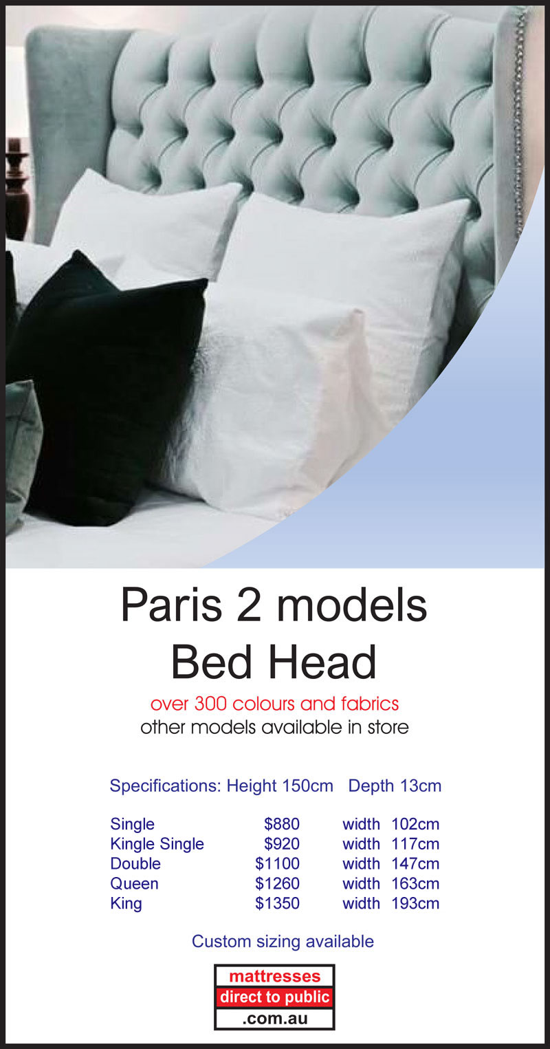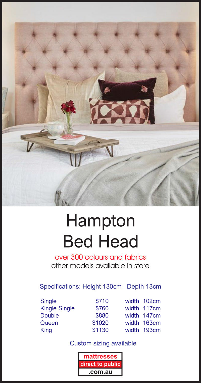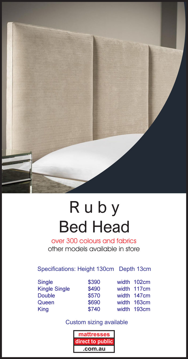 At Mattresses Direct to Public we also produce a quality made to order range of Bed Heads. They can be made in a number of sizes including King, Queen, Double and Single beds. These come in a wide variety of fabrics and styles to suit your tastes and requirements including linen, padded and modern. We also have novelty bed heads and bases to suit the kids, both boys and girls. We also have a range of matching bases that include the option of built in drawers. You can also choose from a wide range of feet with casters and slider styles. Head into our Melbourne Showroom and check out the displays.